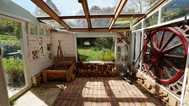 Step into a living testament of earth-inspired craftsmanship with this unique mudbrick house, a creation of Dr. Bob Rich, a pioneer of Moora Moora and the esteemed author of “The Earth Garden Building Book: Design and build your own house.” Built with love in the early 1980s, this dwelling reflects not only a passion for sustainable living but also a commitment to creating a harmonious home in tune with nature.