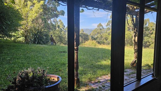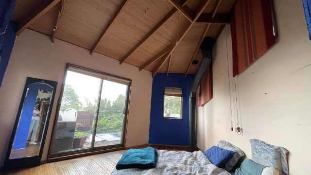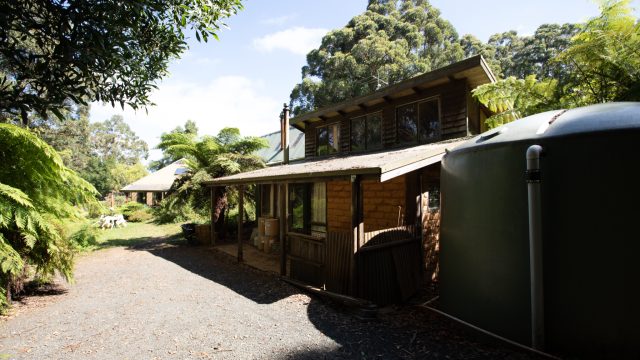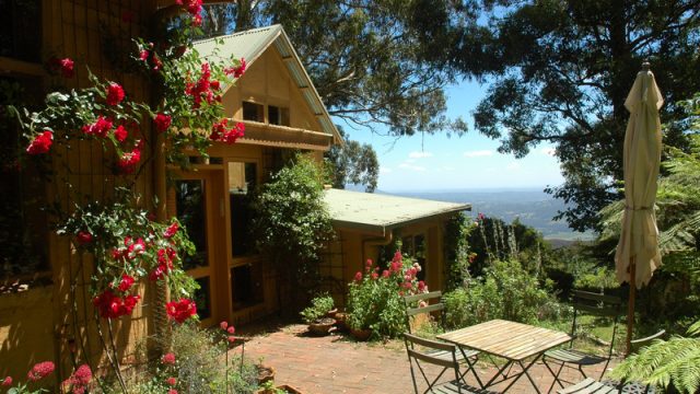 The residence also has an ample woodshed, enclosed garden area, several raised garden beds, and a spa. The only place at Moora Moora with views of both the city (from outside the studio) and the Yarra Ranges National Park from the main house.