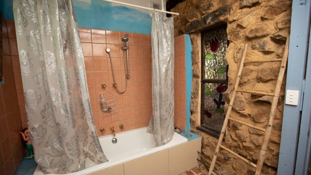 Three bedrooms, two bathrooms, large dining room, kitchen and sitting room, two wood fires plus flued gas heating and stand alone power system – batteries, solar panels, diesel generator.